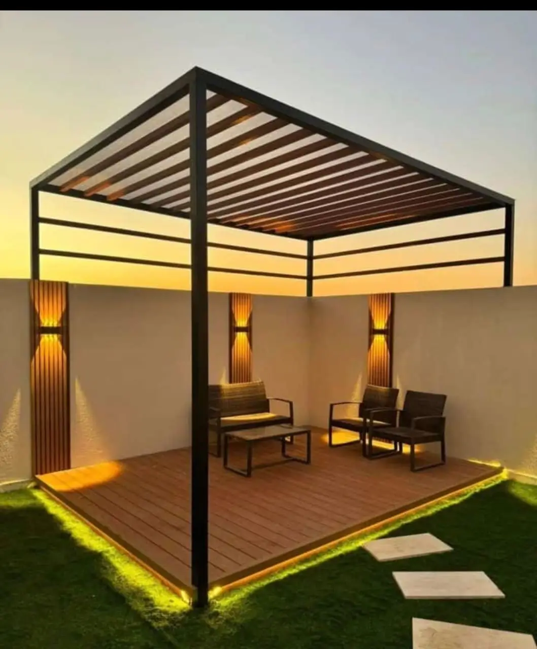 نقدّم تصاميم برجولات عصرية تناسب الحدائق، الأسطح، المداخل، والاستراحات،